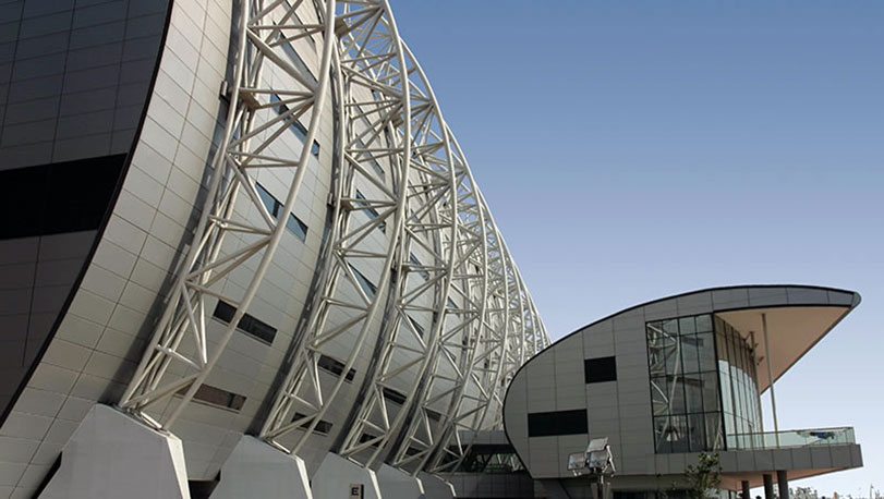 天津泰達(dá)足球場(chǎng)位于天津?yàn)I海新區(qū),于2004年建成。足球場(chǎng)建筑面積6萬(wàn)平方米,可容納3.7萬(wàn)名觀眾,是迄今為止天津最現(xiàn)代化的足球比賽場(chǎng)地。墻面使用