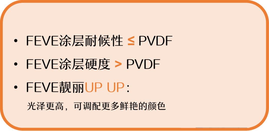 FEVE是聚氟烯烴-烷基乙烯基醚共聚或者氟烯烴-烷基乙烯基酯共聚樹脂的英文縮寫,該樹脂制成的涂料具有高光澤、高透明度的特點,兼具優秀的耐候性。可在常溫下交聯固化,也可以適應高溫固化。