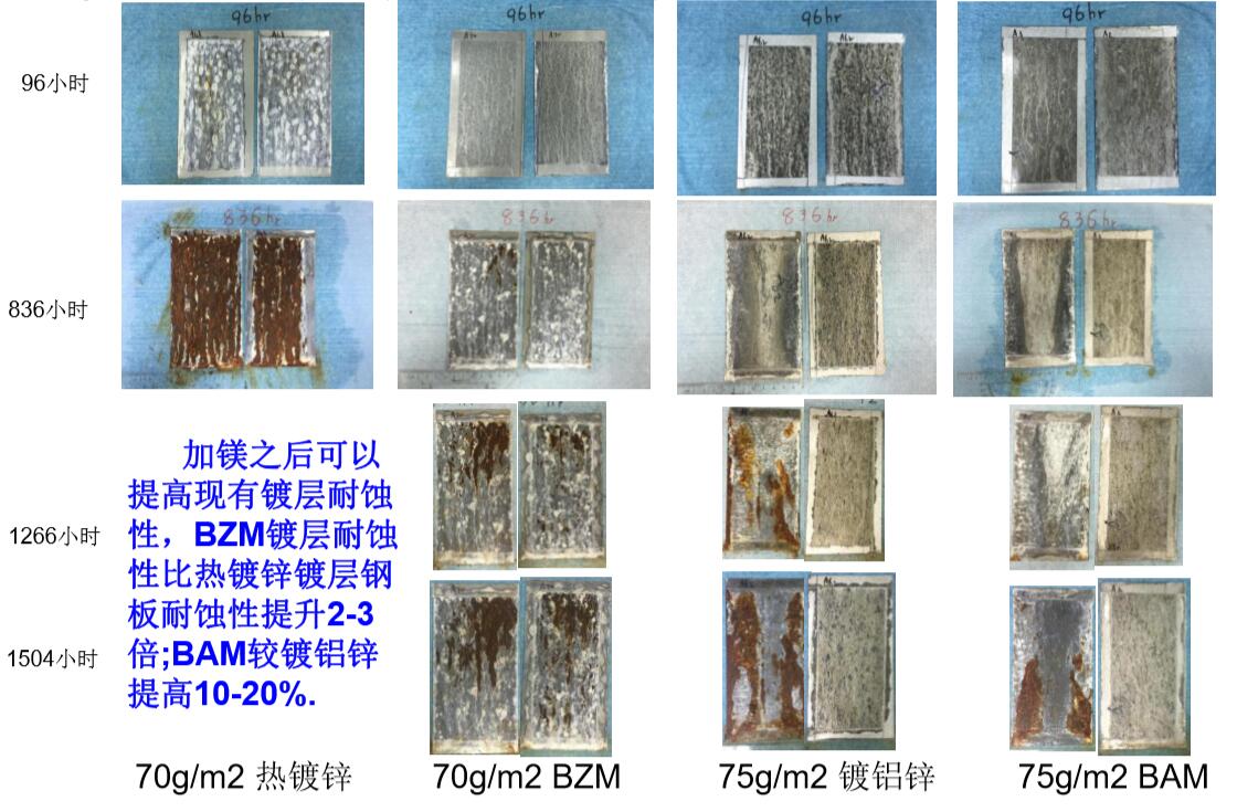 加Mg之后的另一大優點是鋼板的切邊耐蝕性提高,含Mg的Zn基腐蝕產物會覆蓋在切口表面,從而對切口形成保護。